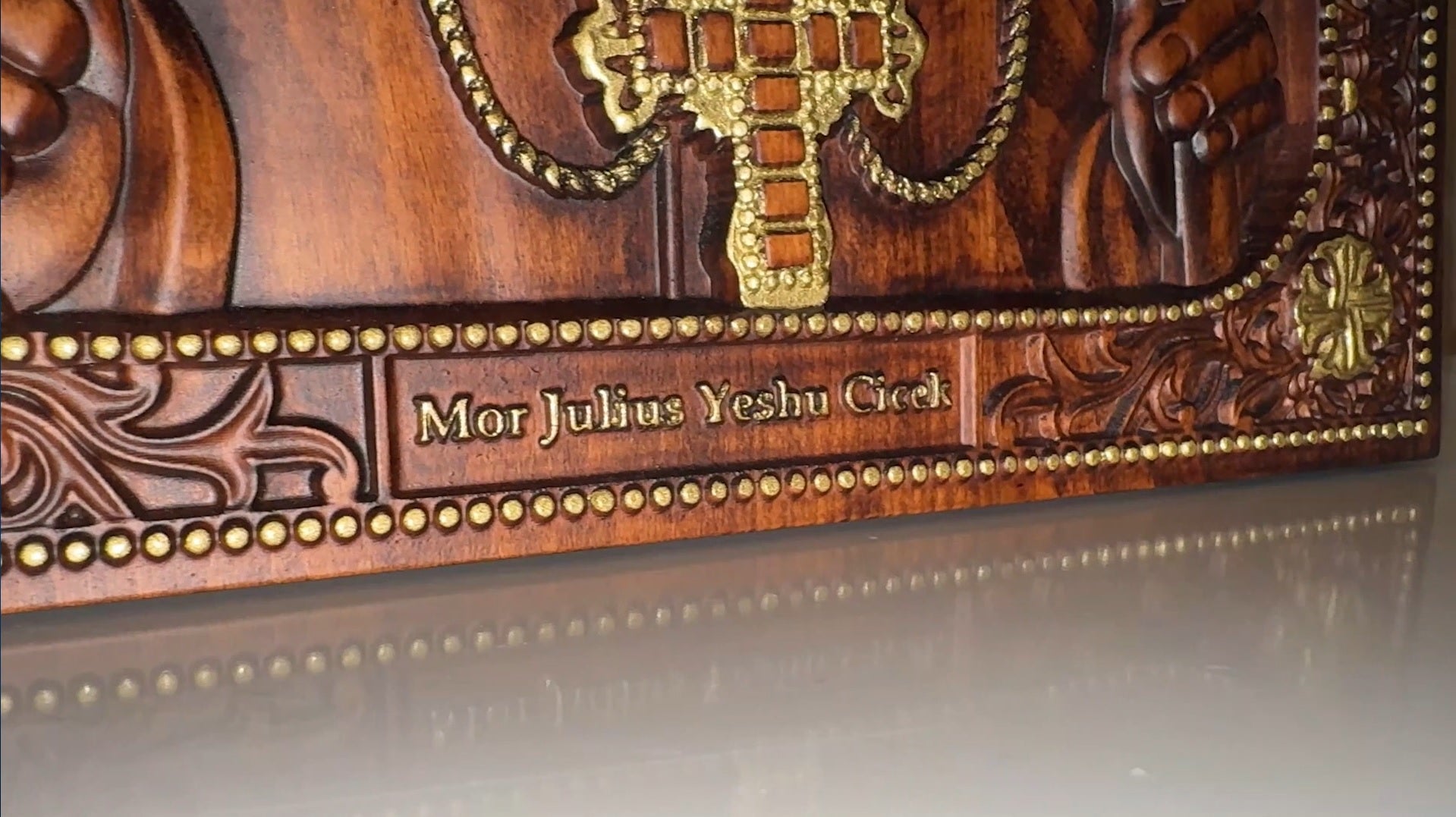 Mor Julius Yeshu Cicek Wood Carved Icon Religious Gift Wall Hanging Art Work